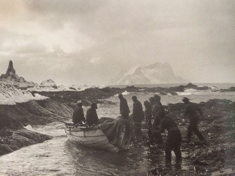 Acknowledging this, Shackleton soon came to a harrowing decision. With a small crew of four men, he would sail the largest of the ship-boats, the James Caird, another 800 miles across one of the most treacherous open oceans in the world back to South Georgia, with the intent of locating a known whaling station there and bringing a ship back to rescue the remaining men. Should he survive the crossing, he’d then have to make a first ascent up and over an icy, unknown mountain range and then trek about 25-30 miles across to the port. I mean, can you even imagine? The rest of the men would fashion the two remaining boats into a tent shelter of sorts and wait, without wi-fi, hoping for a miracle.