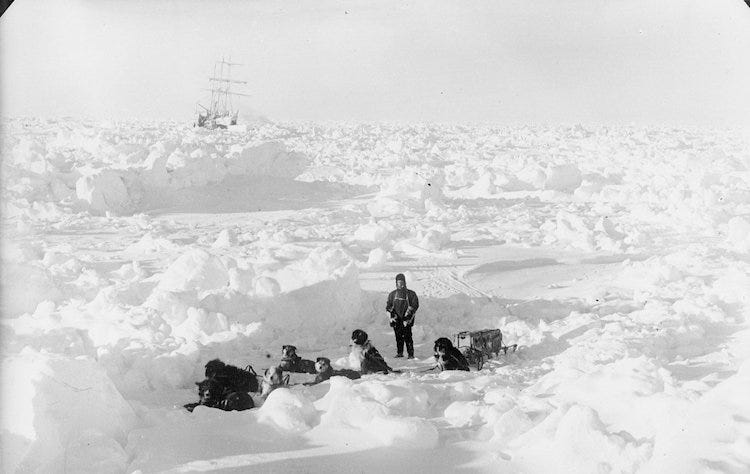 In December of 1914, Sir Ernest Shackleton set sail from South Georgia Island on his new ship Endurance on an ambitious expedition to land on and trek across the entirety of Antarctica. Aboard were 27 men, including: Hurley, one wildly unlucky stowaway, and two packs of sled dogs. If successful, he would be the first to ever do so. What an absolute nutter.